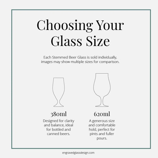 Enjoy your favourite drink in style with our exclusive range of engraved stemmed beer glasses, including chalices and goblets crafted to enhance the aroma, flavour, and overall drinking experience.
