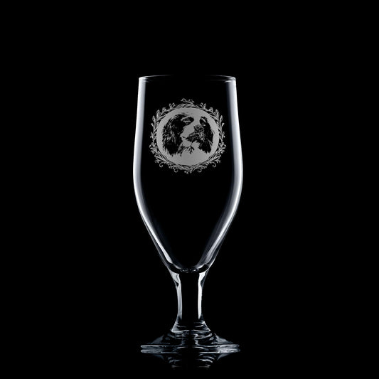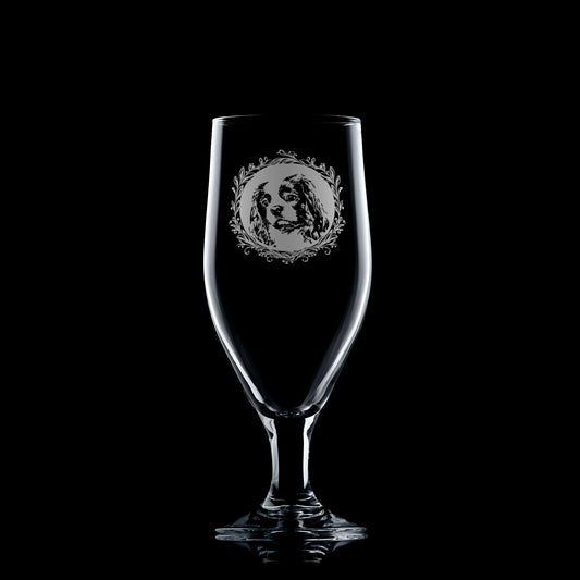 Engraved Cavalier King Charles Spaniel Stemmed Beer Glass
