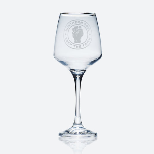 Northern Soul Wine Glass – Clenched Fist ‘Keep the Faith’ Design