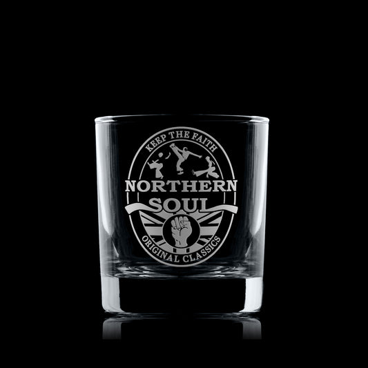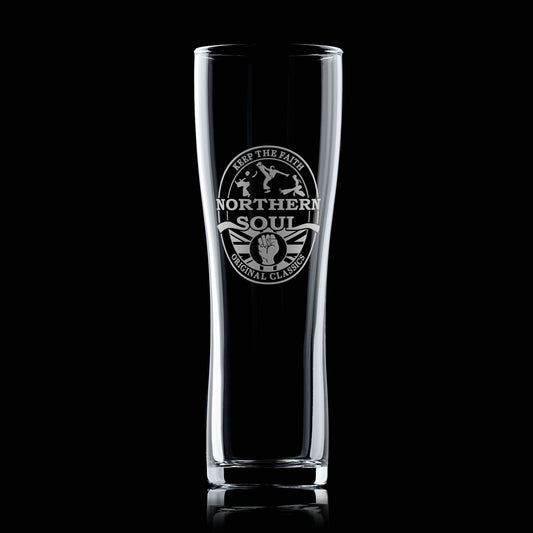 From basement clubs to spinning talcum powder and all-nighters, Northern Soul isn’t just a sound, it’s a heartbeat. Our engraved glassware celebrates the passion and pulse of the scene, capturing its iconic symbols, floor-stomping rhythms, and unforgettable energy. Discover pint glasses and tumblers etched with raised fists, vinyl emblems and slogans that defined the movement. Whether you're toasting to a night at the Wigan Casino, or gifting a fellow soul devotee, each piece is individually handcrafted to honour the music, the memories, and the meaning behind it all. Personalise yours for an even deeper connection, because for Northern Soul fans, it was never just music. It was a way of life.