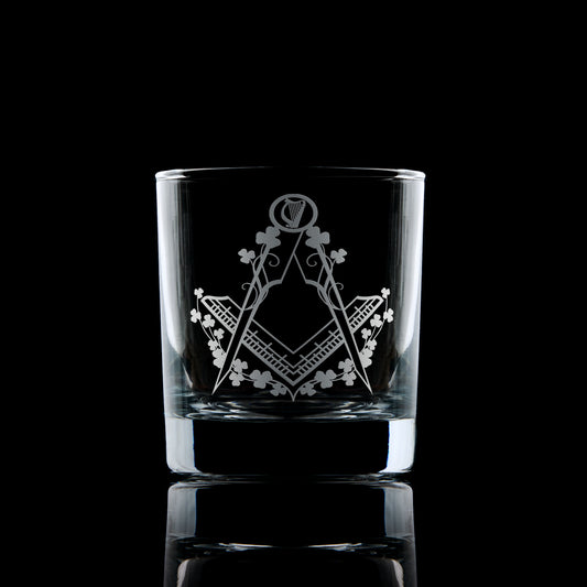 Engraved Masonic Whiskey Glass – Square & Compass, Irish Design