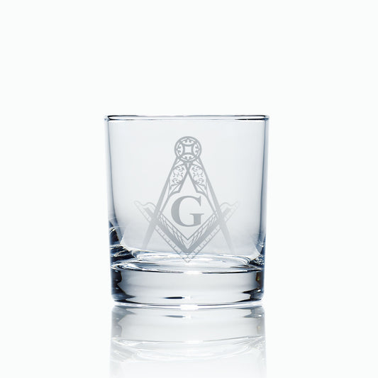 Engraved Masonic Whiskey Glass – Square & Compass, Optional G