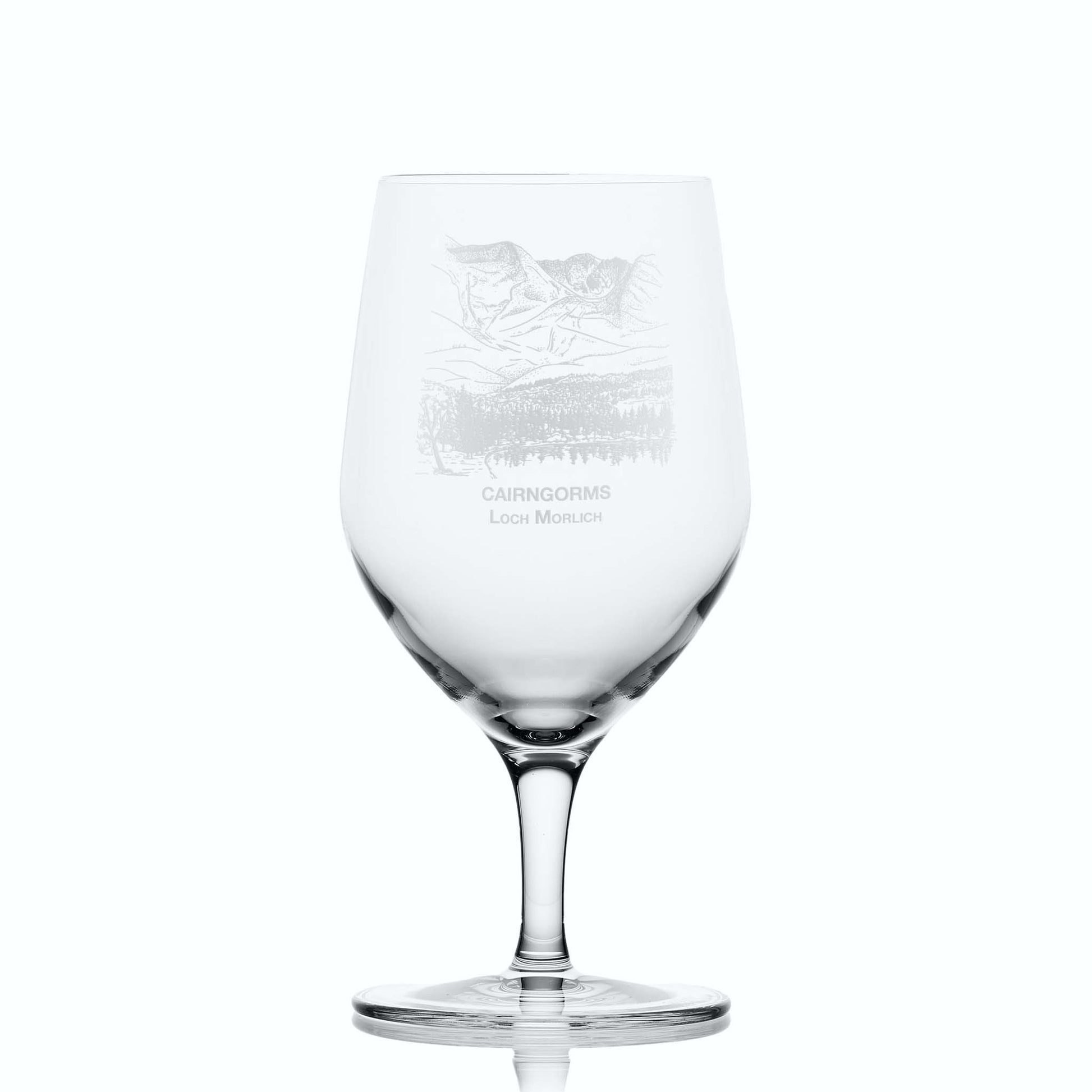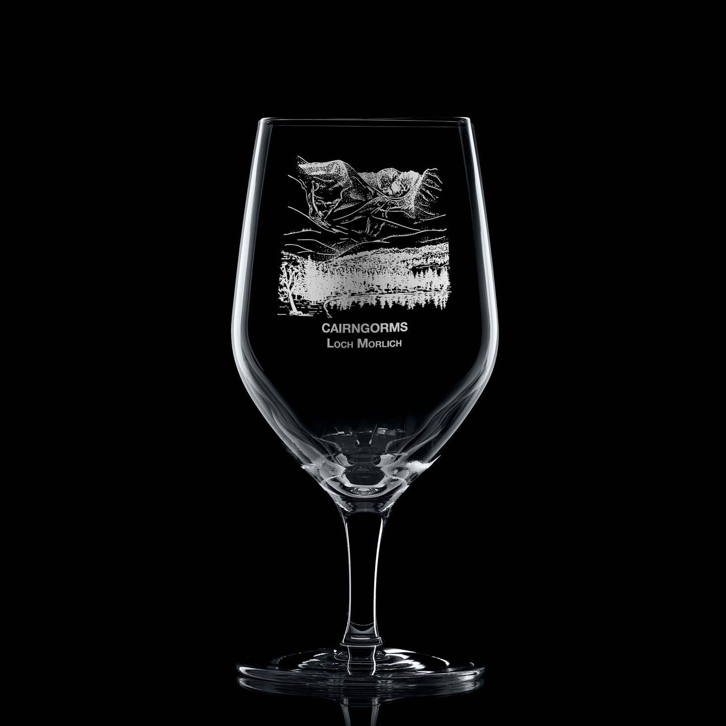 For those who find stillness in Scotland’s landscapes, or simply appreciate a beautifully made glass, this design offers a quiet reminder of the Cairngorms' calm presence. The engraving features the tree-lined edges of Loch Morlich in the foreground, with the mountains rising behind.